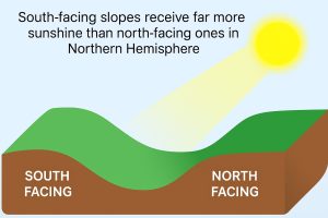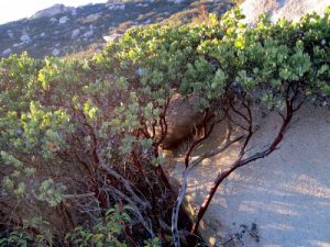 South-facing slopes receive more direct sunlight, making them hotter, drier, and more exposed than north-facing slopes. Chaparral plants that thrive here are adapted to intense sun, heat, drought, and thin soils. They tend to have small, waxy, leathery, or hairy leaves, deep roots, and high fire resistance.