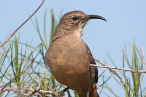 California Thrasher![]()  | •Uses its curved bill to dig through leaf litter, helping control insects and turn over soil •Spreads seeds of fruit-bearing shrubs like toyon and coffeeberry •Indicator of intact, dense chaparral habitat  |